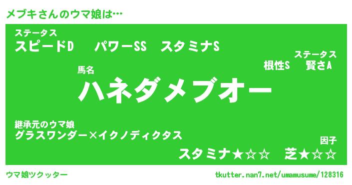 | ヒーロー風カッコイイあだ名 | 『スーパーメブキ』『ウルトラメブキマン』 |
