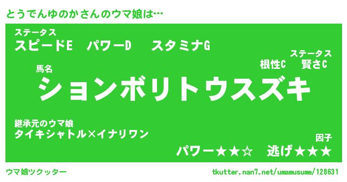 | 男性向けラノベタイトル風あだ名 | 『トウデンユノカアートオンライン』 |