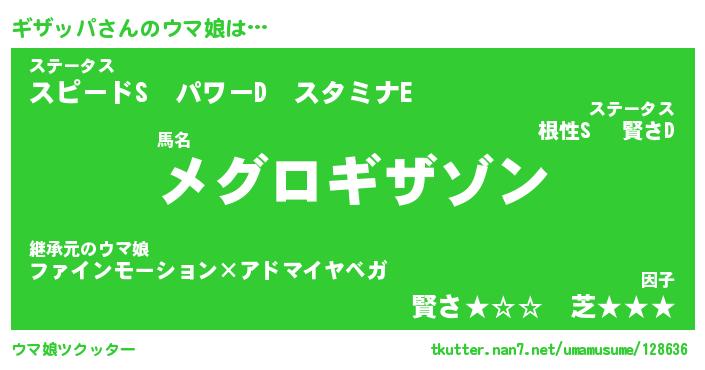 | 意味不明あだ名 | 『ペロリンギザッパ』『永久保存ギザッパ』 |