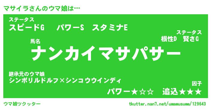 | 意味不明あだ名 | 『ペロリンマサイラ』『永久保存マサイラ』 |