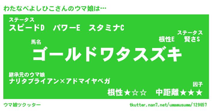 | ポケモン風あだ名 | 『ワタチュウ』『ワタナダネ』 |