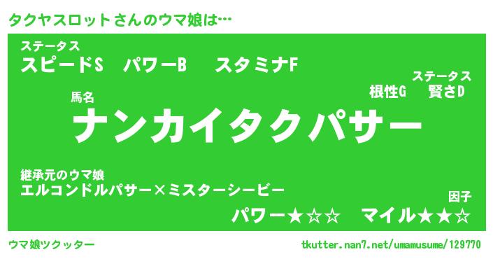 | 欧米人風あだ名 | 『マイケルタクヤスロット』 |