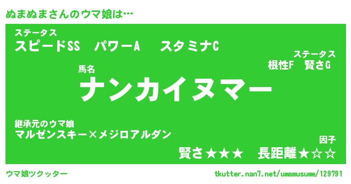 | ファンタジー風あだ名 | 『ヌマフェル』『エターナルヌマヌマー』 |