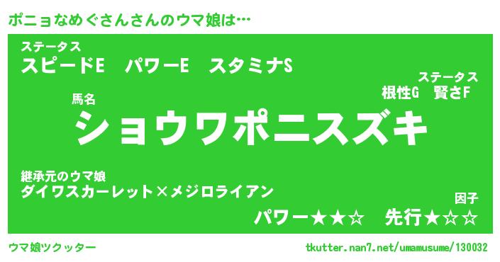 | ポケモン風あだ名 | 『ポニチュウ』『ポニョダネ』 |
