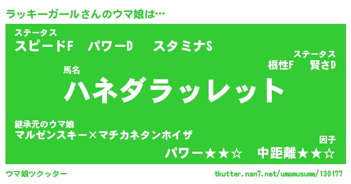 | 2回繰り返すあだ名 | 『ラッラッ』『ララッッ』『うねうね』 |