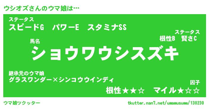 | 肩書あだ名 | 『ウシオズ御曹司』『ウシオズ国家主席』 |