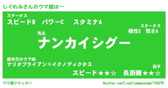 | ヘコむあだ名 | 『しぐにゅー』『豆乳』『しぐっ子』 |