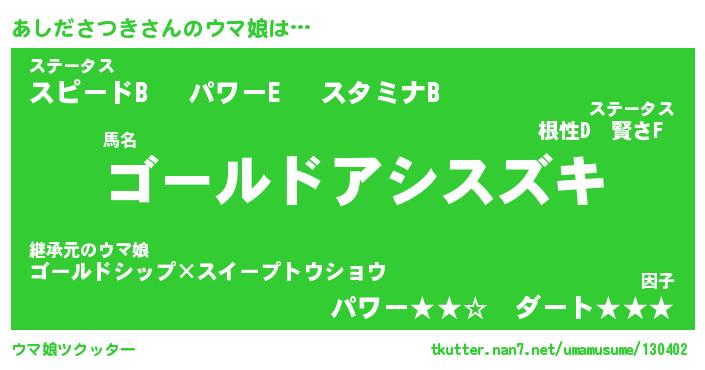 | ヒーロー風カッコイイあだ名 | 『スーパーアシダサツキ』『幻影騎士アシ』 |