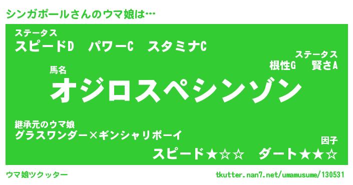 | 男性向けラノベタイトル風あだ名 | 『シンガポールの憂鬱』 |