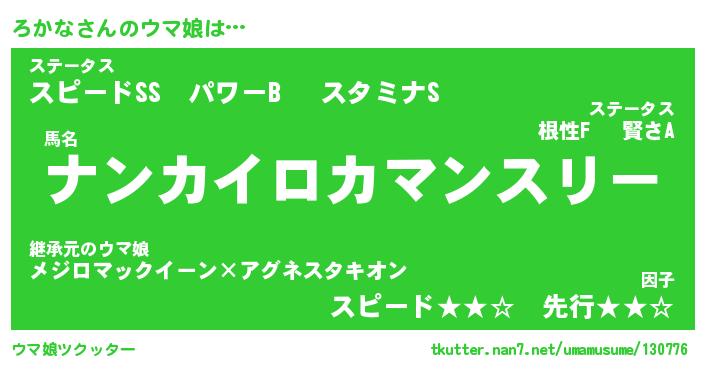| ヒーロー風カッコイイあだ名 | 『スーパーロカナ』『ウルトラろかなマン』 |