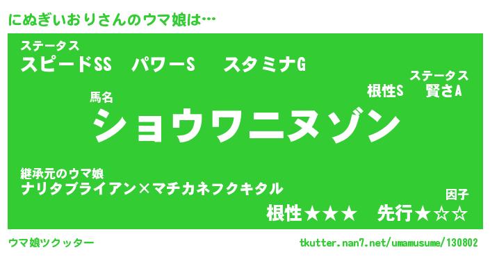 | ポケモン風あだ名 | 『ニヌチュウ』『ニヌギダネ』 |