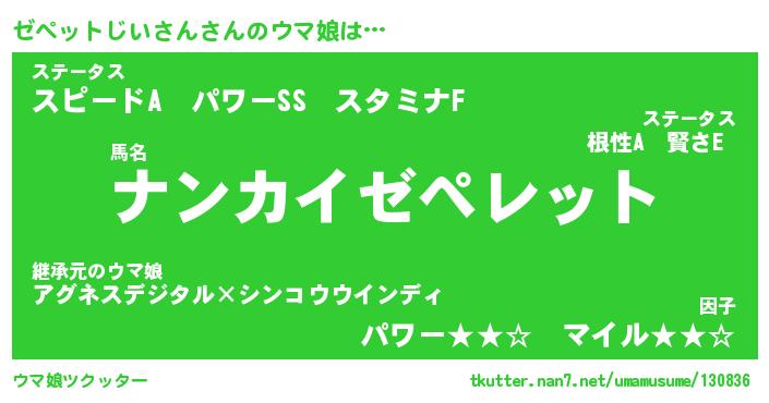 | ポケモン風あだ名 | 『ゼペチュウ』『ゼペッダネ』 |