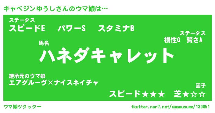| 番長 | キャベジンゆうし、またの名を・・・!『眠たげなキャベジンゆうしちゃん』 |