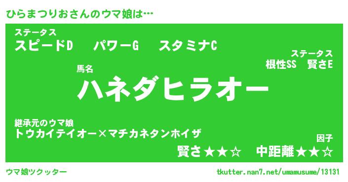 | ヒーロー風カッコイイあだ名 | 『スーパーヒラマツリオ』『天弓騎士ヒラ』 |