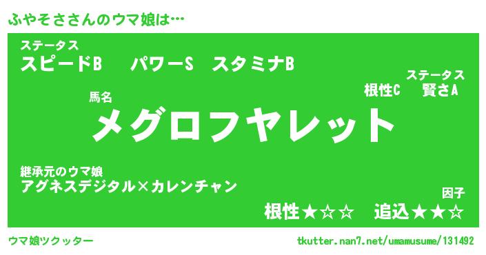 | ファンタジー風あだ名 | 『フヤフェル』『エターナルフヤソサー』 |