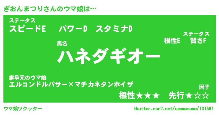 | 恥ずかしいあだ名 | 『プリティーぎおんまつり』『ぎおっちょ』 |