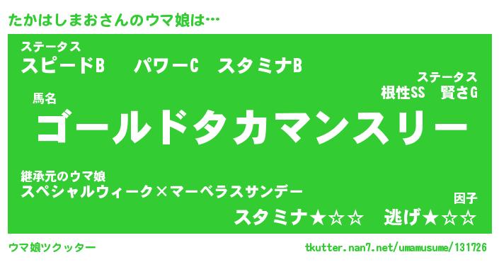 | 自動車の名前っぽいあだ名 | 『タカティマ』『タスラー』『タント』 |