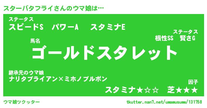 | 男性向けラノベタイトル風あだ名 | 『スターバタフライアートオンライン』 |