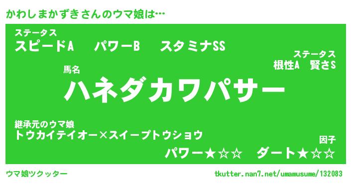 | ポケモン風あだ名 | 『カワチュウ』『カワシダネ』 |