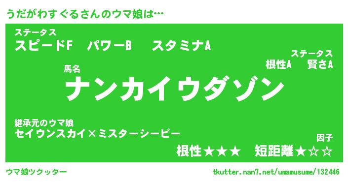 | ポケモン風あだ名 | 『ウダチュウ』『ウダガダネ』 |