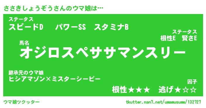 | ヒーロー風カッコイイあだ名 | 『スーパーササキショウゾウ』 |