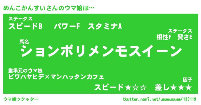 | 2回繰り返すあだ名 | 『めんめん』『めめんん』『いじいじ』 |