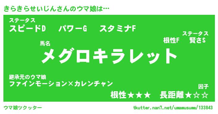 | 2回繰り返すあだ名 | 『きらきら』『ききらら』『けろけろ』 |