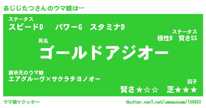 | 男性向けラノベタイトル風あだ名 | 『アジジタツアートオンライン』 |