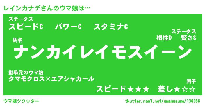 | ポケモン風あだ名 | 『レイチュウ』『レインダネ』 |