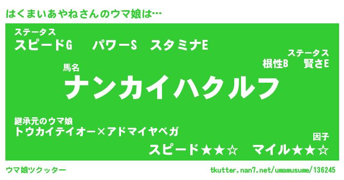 ポケモン風あだ名 | 『ハクチュウ』『ハクマダネ』 |