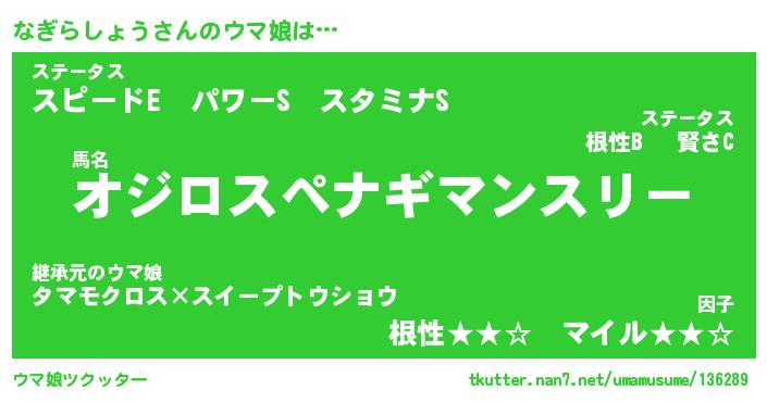 | 欧米人風あだ名 | 『マイケルなぎらしょう』 |