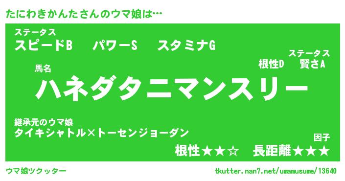 | 自動車の名前っぽいあだ名 | 『タニティマ』『タスラー』『タンR』 |