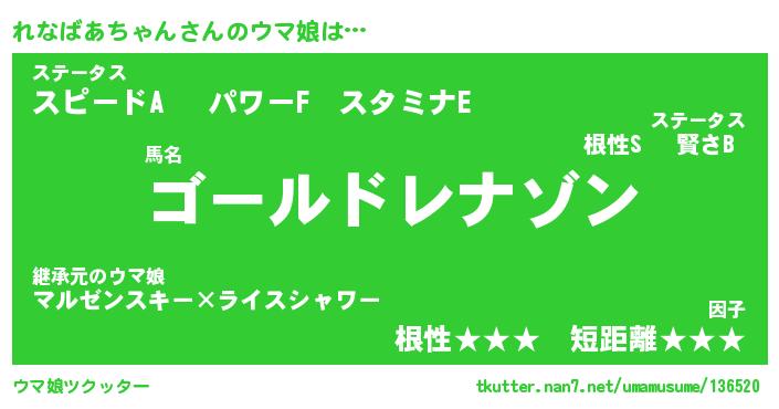 | 男性向けラノベタイトル風あだ名 | 『レナバアチャンアートオンライン』 |