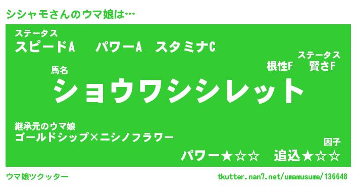 | ファンタジー風あだ名 | 『シシフェル』『エターナルシシャモー』 |