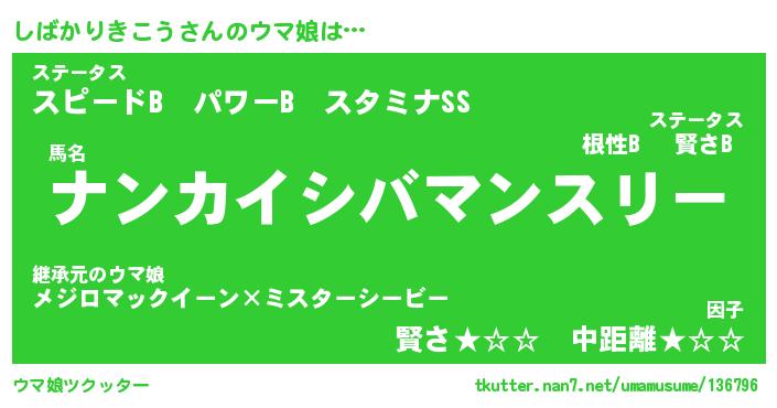 | ファンタジー風あだ名 | 『シバフェル』『ファントムシバス』 |