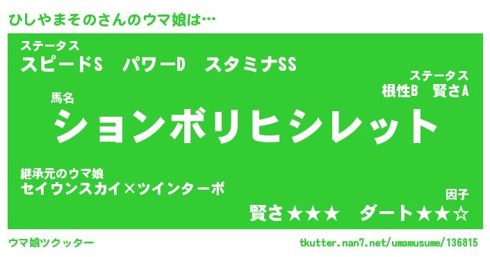 | 自動車の名前っぽいあだ名 | 『ヒシティマ』『ヒクア』『ヴィッヒ』 |