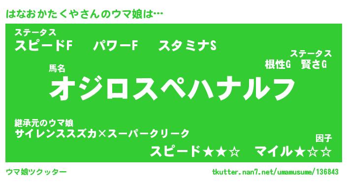 | ファンタジー風あだ名 | 『ハナフェル』『ファントムハナス』 |