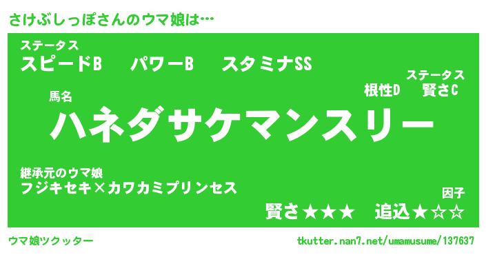 | 男性向けラノベタイトル風あだ名 | 『サケブシッポアートオンライン』 |
