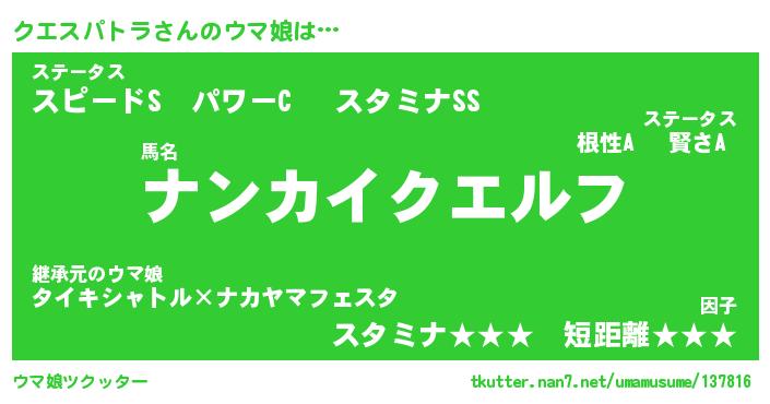 | ポケモン風あだ名 | 『クエチュウ』『クエスダネ』 |