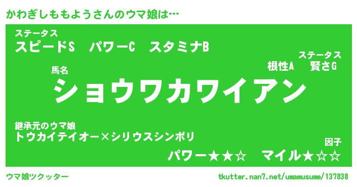| ヒーロー風カッコイイあだ名 | 『スーパーカワギシモモヨウ』 |