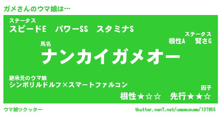 | 意味不明あだ名 | 『ペロリンガメ』『ガメフォーエバー』 |