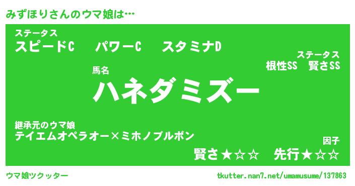 | ポケモン風あだ名 | 『ミズチュウ』『ミズホダネ』 |