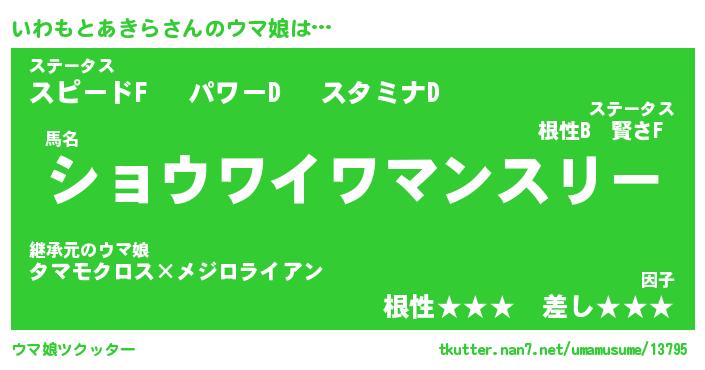 | 自動車の名前っぽいあだ名 | 『プリイワ』『イスラー』『ヴィッイ』 |