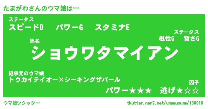 | ファンタジー風あだ名 | 『タマフェル』『エターナルタマガワー』 |