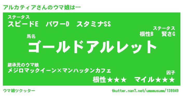 | 男性向けラノベタイトル風あだ名 | 『アルカティアアートオンライン』 |