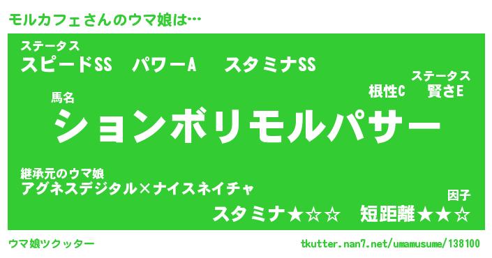 | ヘコむあだ名 | 『モルふぇ~』『つくし』『モルっ子』 |