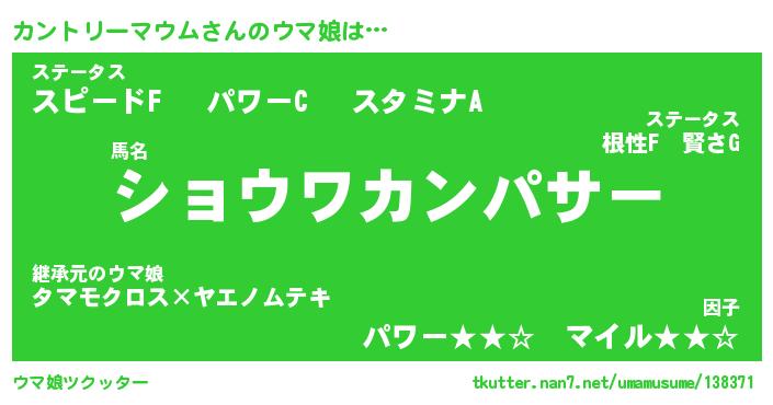 | ヒーロー風カッコイイあだ名 | 『スーパーカントリーマウム』 |