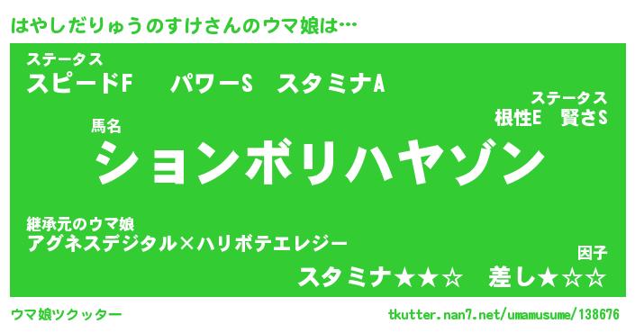| 自動車の名前っぽいあだ名 | 『ハヤティマ』『ハクア』『ヴィッハ』 |