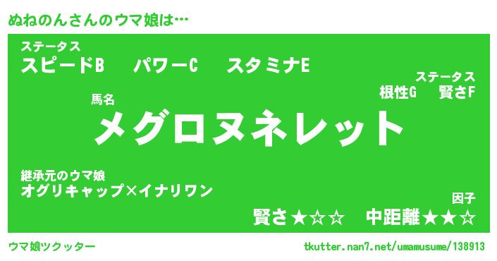 | ポケモン風あだ名 | 『ヌネチュウ』『ヌネノダネ』 |