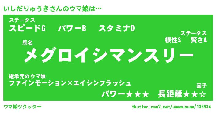 | ヒーロー風カッコイイあだ名 | 『スーパーイシダリュウキ』 |